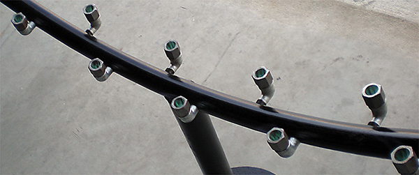 We sell inspirators, similar to a burner on a turkey fryer, you dial in the oxygen mix created by the venturi built into the inspirator to maximize BTU’s. Each Inspirator will feed up to 22 nozzles (Tips), generating roughly 18,800 BTU’s or around 850 BTU’s per nozzle (Tip). Our products are designed to be used with standard NPT pipe fittings, our tips are 3/8” NPT while the Inspirator is 1.25” NPT.