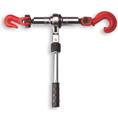 - Have screw clamps bite both ends of a steel structure, insert hook into eye, set stopper to “IN” and operate handle