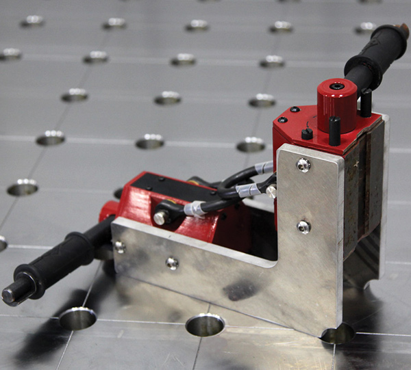 90° magnetic right angle for fast and easy way to secure steel sheets for fillet welds and fabrication. 2 - FUGL-100 770 lbs breakaway magnets with locking handles for safety. 6”x8” design allows for quick attachment to shorter components.